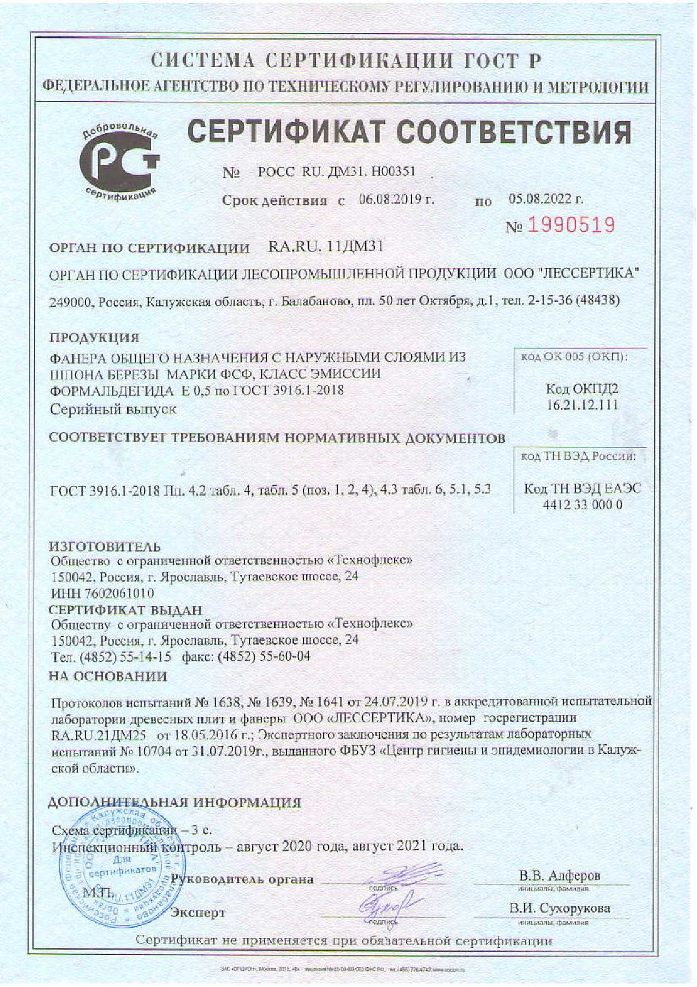 Подтвержденное сертификатами и действующими ГОСТ